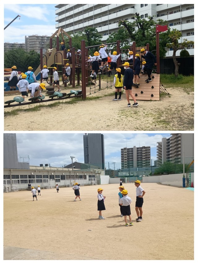 学校に戻ったグループから、運動場で一緒に楽しく遊びました。1年生をしっかりリードしてくれた6年生のみなさん、ありがとう!