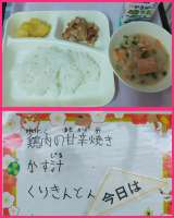 本日の給食は ・鶏肉の甘辛焼き ・...