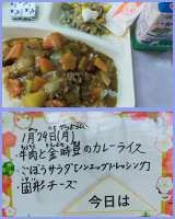 本日の給食は ・ミートボールと野菜のカレー煮 ...
