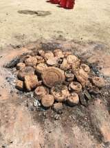 ずいぶんと焼けてきました。 炎は消えましたが、土器の周りはまだまだ、靴底が溶け...