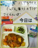 本日の給食は ・ハヤシライス ・ミックス海そうのサラダ ...