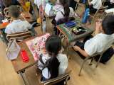 5年生は1組は百人一首で、2組は家庭科でした。引き渡し訓練のあとは、林間保護者説...