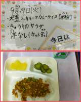 本日の給食は ・焼きそば ・きゅうりのしょうが...