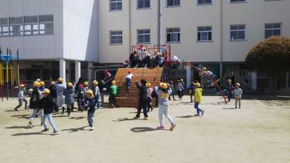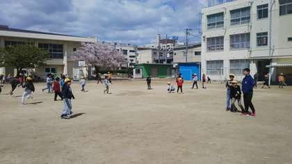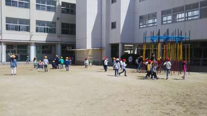 今日は、すっきりと晴れ渡り、たくさんの子が運動場で遊んでいました。
