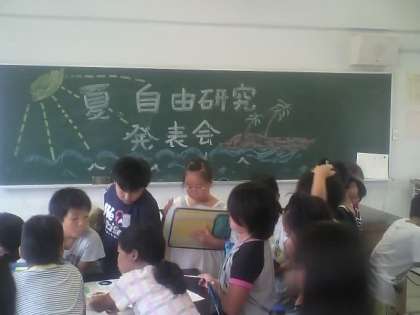 3・4年生が合同で夏休みの自由研究の発表会兼交流会を行いました。