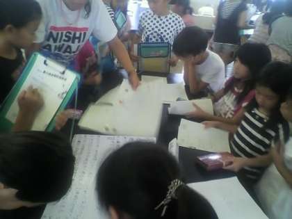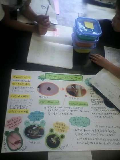 新聞のように画用紙や大きな紙にまとめている子もいれば、ノートにきちんと記録を書いている子、紙にまとめたものをクリアブックに入れてまとめている子など、まとめ方もそれぞれの工夫がみられました。