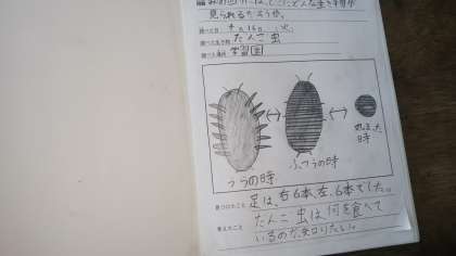 子どもたちならではの感性が光る観察記録がたくさんあり、子どもたちは楽しく理科の学習をすすめています。