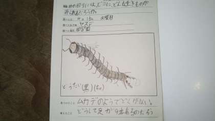 3年生は学校の自然観察学習園などで観察した昆虫や植物の“かんさつカード”を書いています。