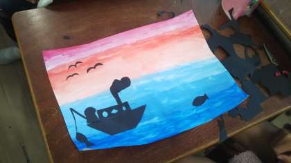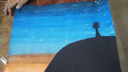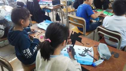 5年生は、図画工作の時間に「グラデーション」を使った風景画の作品を作っています。