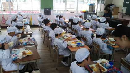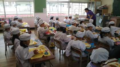 学校給食は、食を通して様々なことを学ぶ、という大切な要素が入っており、給食の時間もまた、子どもたちにとっては学びの場となっています。