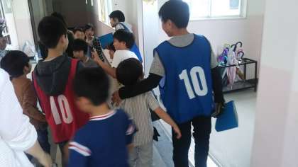 各教室に分かれて、1回目の活動が行われましたが、6年生が1年生の教室まで送り迎えをしてくれました。