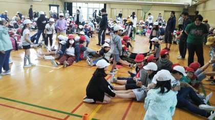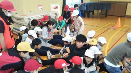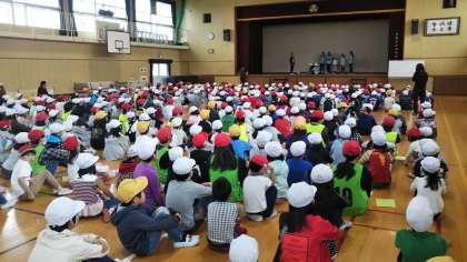 毎週木曜日は、体育館で「たてわり班集会」が行われ、毎回楽しいゲームや遊び、クイズなどを集会委員会の児童が中心となって考え、進行もしてくれます。