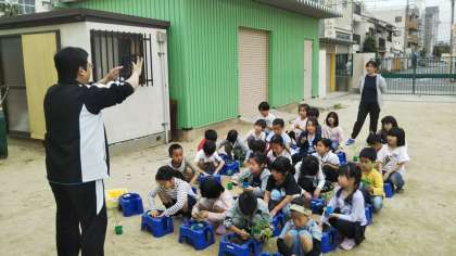 1年生の時に、あさがおとチューリップを育てた2年生。