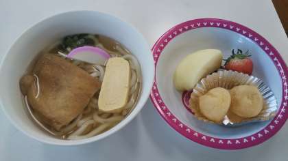 今日の朝ごはんやさんに、きつねうどんが登場!