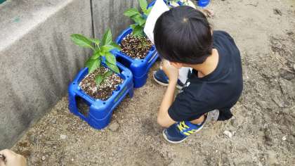 子ども達は毎日お水をあげて、その成長を楽しみにしています。
