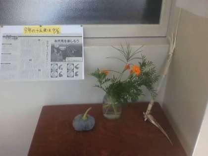 また、今週初めの中秋の名月にちなんでの新聞記事も掲示され、ススキもあります。