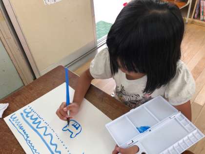 今日は、初めて絵の具や筆を使うという子も多かったので、基本的なことから勉強しました。