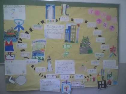1学期に環状線を一周したり、資料を調べたりして作っていた大阪探検マップが完成しました。