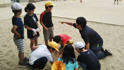 運動場からは子どもたちの元気な声とともに、元気な?先生の声も聞こえてきます…。