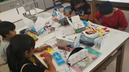 今日は1回目の授業ということで、教材の箱から部品を取り出しました。