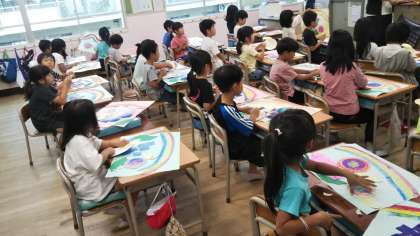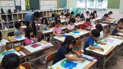 1年生は図画工作の時間に「かたつむりのおさんぽ」という作品をつくっています。