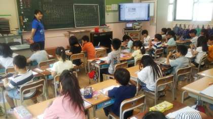 教室ではブロックやデジタル教科書も使いながら、子どもたちが理解しやすい指導を心がけています。
