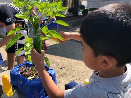 中には、「もう少し大きくなるのを待って収穫するんだ!」と今日は収穫せず、来週収穫できるのを楽しみにしている子どもたちもいました。