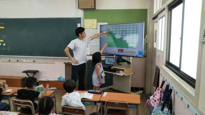 算数は「ひき算」の学習を「計算カード」を使いながら行っています。教室に設置してある電子黒板を使って、計算の法則性を見つける学習も行いました。