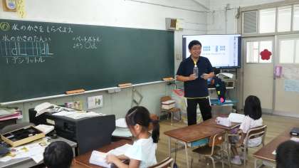 様々な容器に入った水も、1dLますのような決まった大きさの入れ物があると、比べることができることが分かりました。