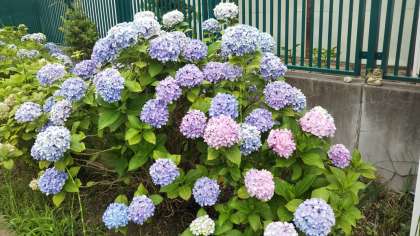 学校西側の、地域の方が管理されている花壇では、梅雨を待ちわびていたかのように、きれいな花々が生き生きと咲いています。