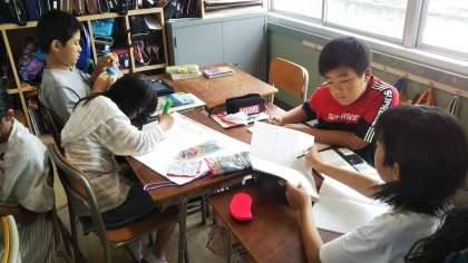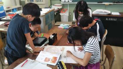 班で各自が調べたことを積極的に発表しあい、どうすれば相手に伝わりやすいかを考えながら、画用紙にまとめることができていました。