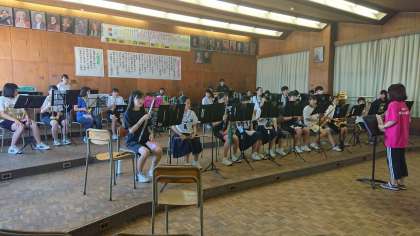 8月のサマーフェスティバルでのお披露目を目指して、練習に励んでいる子どもたちですが、今日は淡路中学の先輩が教えてくれるとあって、ワクワク、ドキドキ感満載でした!