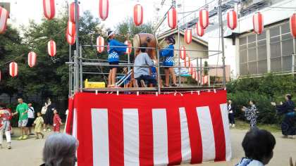 また、盆踊りでは、6年生の4人がやぐらに上がり、太鼓をたたきましたよ!