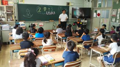 教室に戻ってからは、担任の先生と夏休み中の暮らしについて子どもたちとお話をしました。子どもたちの楽しそうに話す姿がとても印象的でした!