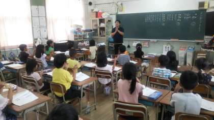 教科書に載っている言葉以外にも、たくさんの単語が子どもたちから出され、字数にあわせてみんなで手をたたきながらリズムよく発声。みんな、とても生き生きとした表情で学習することができていました。