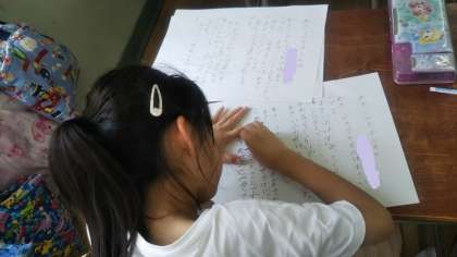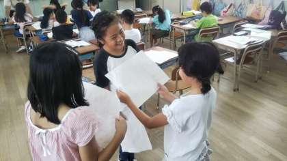 2組では「たからものをしょうかいしよう」の授業が行われていました。今日は学習のまとめとして、子どもたちがみんなに伝えたい自分の宝物について書いた文章を2人組になって発表しあいました。少し恥ずかしそうにしながらも、友だちに紹介しあう子どもたち。読み終えたあとの、ほっとしたような、嬉しそうな、何とも満足げな表情がとても印象的でした!