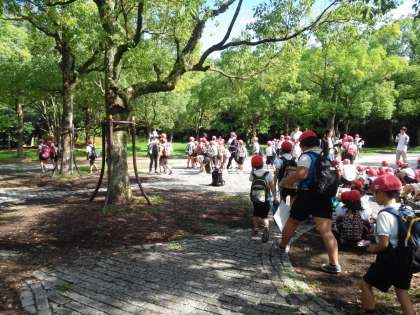 5年生がリーダーとして、みんなをつれて、ポイントを巡ります。