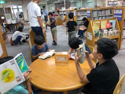 後半では、実際に図書館の中で、各自が思い思いの本を手に取り、静かに本を読んでいる姿が見られました。