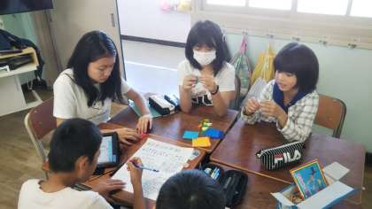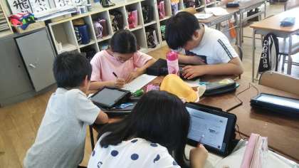 各班で設定したテーマをもとに、タブレットなどを使って調べ学習を行い、そこで初めて知ったことや各自が考えたことをまとめていきます。