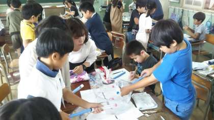教室で実験も行いましたよ。