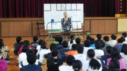6年生は全員が講堂に集まり、戦争の語り部さんをお招きして、平和学習を行いました。