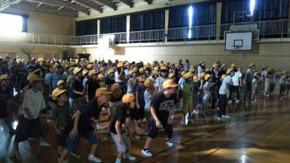 子どもたちには事前に伝えていませんでしたので、びっくりした子もいましたが、たてわり班でも一緒にダンスをおどり、体も心もほぐれて教室に向かいました。