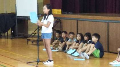 そのあと、各学年の代表の子どもたちが「命の大切さ」についての作文を発表し、「仲間を考える集会」が終わりました。