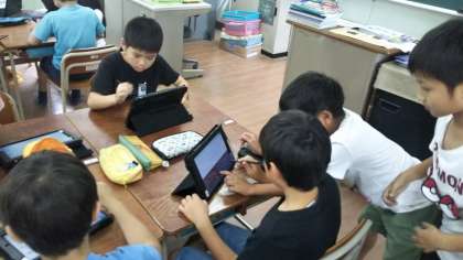 タブレットにふれる機会を多く持つことで、子どもたちは自然と操作の技術を高めることができています。