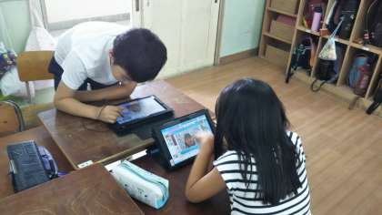 学習の中で様々な使い方をしているタブレットですが、今日は教室掲示用に活用している場面をみかけました。