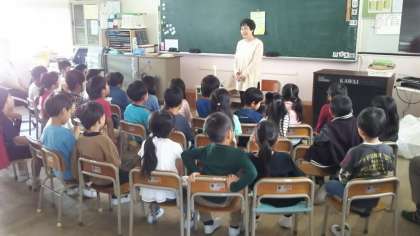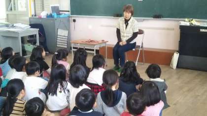 教室の前に子どもたちを集め、ローソクを一本灯し、お話が始まると、子どもたちはあっという間に本の世界へ!