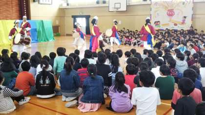 「チュモニ」とは、韓国・朝鮮語で「大切なものを入れる小袋」という意味があり、今日の公演を通して、子どもたちが豊かな心を育めるようにという願いが込められています。