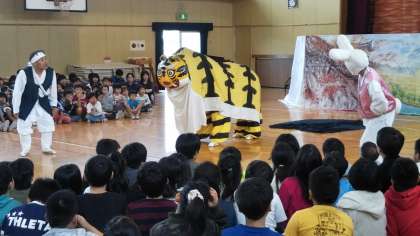 今日は、楽器の演奏や扇の舞、民話劇「うさぎの裁判」、あそび体験など、盛りだくさんの内容で、子どもたちは楽しい時間を過ごしました。