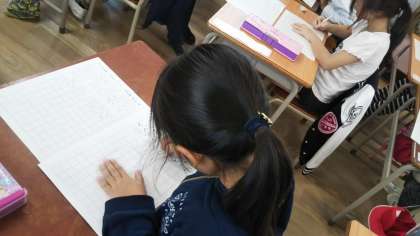 今日の1時間目、1年1組は国語の「視写」の学習に取り組んでいました。