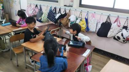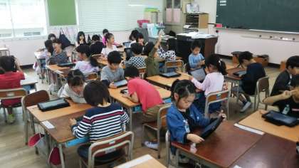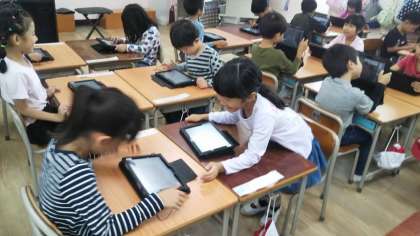 1年3組は、タブレットを使った学習に取り組んでいました。